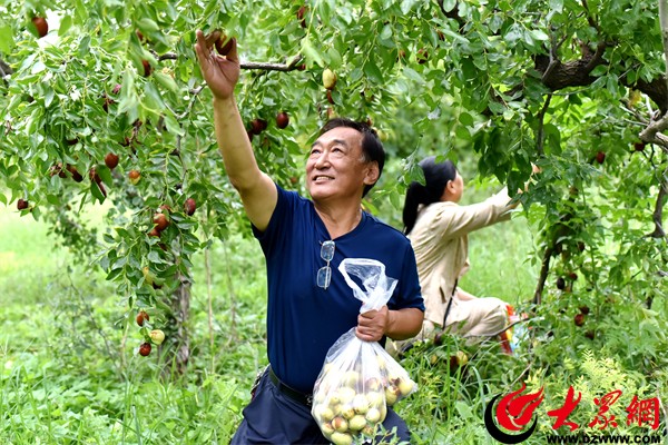 同样忙碌的还有孙武街道邓家村蛙声小镇农业合作社的脆枣园,“从网上刷到了解到这里脆枣成熟了,就约了朋友来采摘,这里的脆枣又脆又甜,老人小孩都比较喜欢。”来自滨州市区的游客杨淼说。