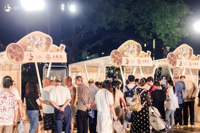 电影走出银幕,走进人们的生活,愈能散发出迷人的艺术魅力。作为第二届金熊猫奖的重要配套活动“大家一起看电影”展映活动,五粮液积极融入其中,让观影体验从影院延伸到成都市的天府艺术公园、宽窄巷子、双子塔,宜宾市合江门等城市地标街头,通过一场场露天免费电影,让老百姓邂逅经典影视剧,感受生活中的“和美时光”。