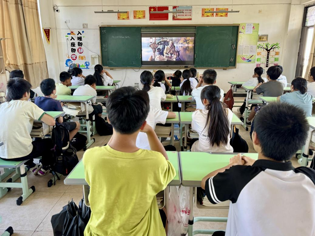 “雄赳赳,气昂昂,跨过鸭绿江……”激昂的旋律回荡在教室,班主任们利用班会课组织学生观看爱国主义影片《长津湖》。观影过程中,同学们全神贯注,被影片中志愿军战士在极寒恶劣环境下浴血奋战、保家卫国的事迹深深打动。观影结束后,同学们纷纷表示,深刻体会到今天的幸福生活来之不易,今后要以革命先烈为榜样,传承红色血脉,努力学习,为祖国的繁荣富强贡献青春力量。