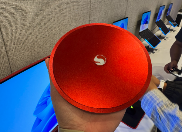 比较遗憾的是测试时间有限,新平台在不插电时的性能表现只能等到产品上市后再来揭晓了。不过,除了在现场进行性能测试,高通还展示了多款搭载骁龙X2Elite系列的PC参考设计,除了不同尺寸的笔记本、二合一产品外,MiniPC的设计十分夺人眼球。
