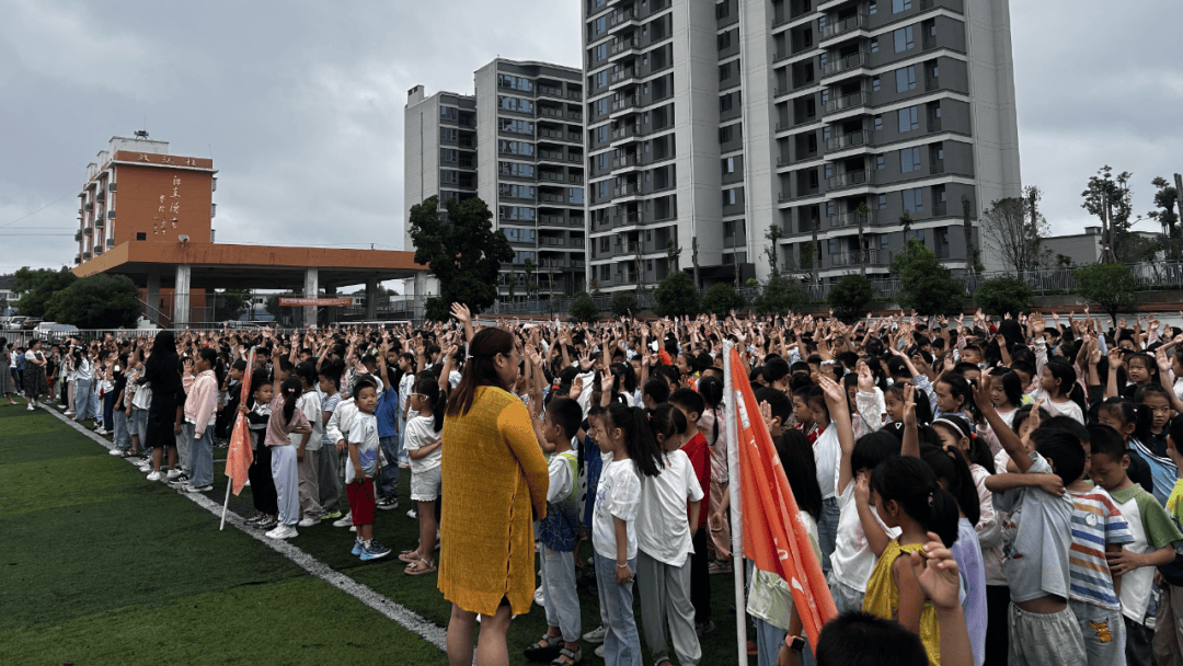9月18日课间集会上,政教处邓建军老师再次向全体同学强调了预防溺水的重要性。随后,全体同学集体肃立,高声背诵防溺水“六不准”。紧接着,同学们齐声重温了外出安全“四告知”制度:外出前,必须向家长告知去向、告知同伴、告知内容、告知归时。最后,在邓建军老师的带领下,全体同学庄严举起右手,承诺将严格遵守“六不准”和“四告知”要求,用实际行动珍爱生命,预防溺水。洪亮的承诺声在校园回荡,彰显了同学们守护自身安全的决心。