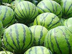 西瓜(学名:Citrulluslanatus (Thunb.)Matsum.etNakai)一年生蔓生藤本;茎、枝粗壮,具明显的棱。卷须较粗壮,具短柔毛,叶柄粗,密被柔毛;叶片纸质,轮廓三角状卵形,带白绿色,两面具短硬毛,叶片基部......