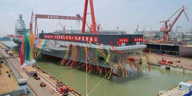 而最上面的飞行甲板,其实等于是在机库主甲板之上临时搭建了一整套木质的、前后贯通的大棚顶部!虽然二战后的机库与之上的飞行甲板都是钢制一体成型的,但是机库地面甲板就是整艘航母第一主甲板的基本概念并没有改变。机库地面之下的下一层钢制甲板就叫二甲板,再往下就叫做三甲板,以此类推。而目前在30万吨级干船坞内进行纵向合拢施工的巨段,都是三甲板再往下的船体部分。而在整个三甲板以下吃水舰体前后焊接贯通后,才可以把机库作为回字型巨型模块直接挨个吊装在焊接上,然后再把外漂模块与最后的舰岛吊装焊接上,整艘航母的主体部分就全部完成了。神秘大国在前面自建的2大平台,期间的船坞内合拢施工过程基本都是这个顺序。第二点,就是要搞清楚现在正在合拢施工的,
